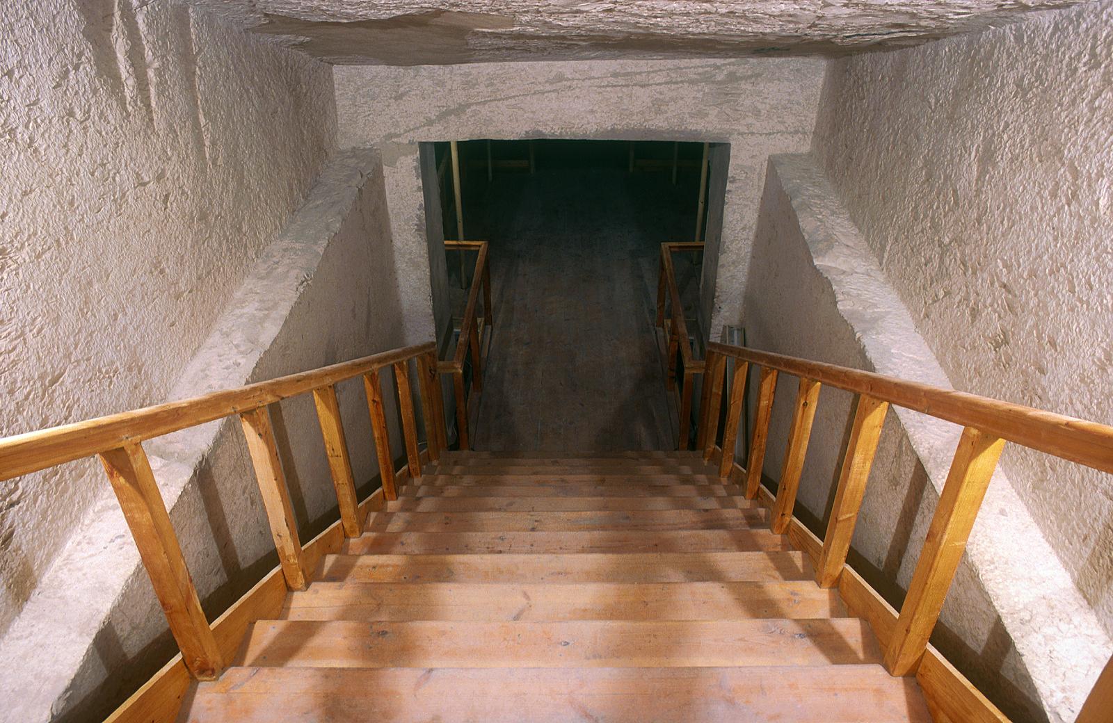 In Dynasty 18 royal tombs, the descent was cut in to the floor of a chamber near one of the side walls, usually the left.
