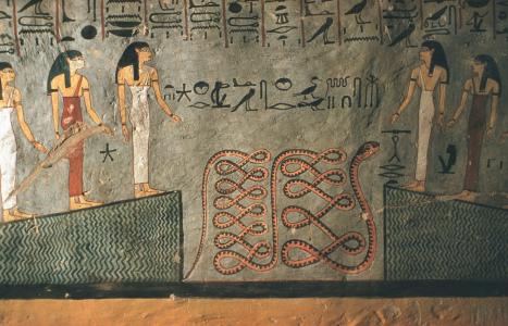 Book of Gates on walls; sarcophagus in center.