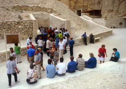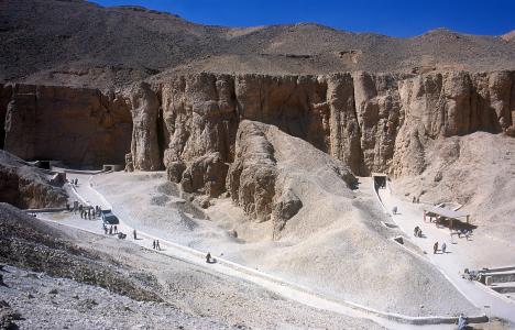 Tomb entrances and tourist shelter.