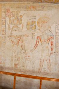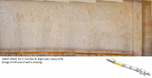 KV 02: Rameses IV, Corridor B, left wall (left part). Rameses IV addressing Ra-Horakhty (reconstruction)