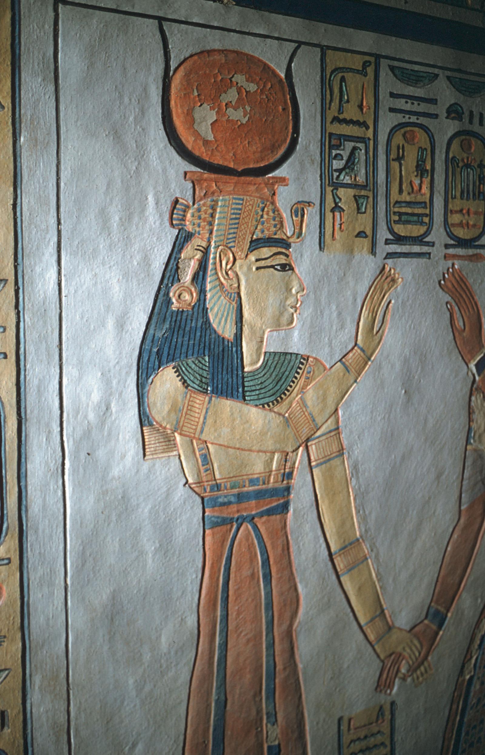 Detail of the goddess Hathor, Chamber B, rear wall (right part). Courtesy of Uni Dia Verlag; Uni Dia Image Nr. 36634.
