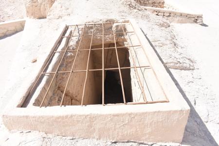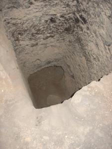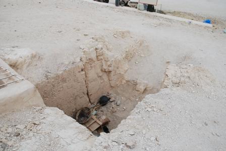 Retaining wall of QV49 in foreground. Entrances to QV21, QV22, QV23, QV24, QV25, QV26, QV27, QV29, and old electricity building in background.