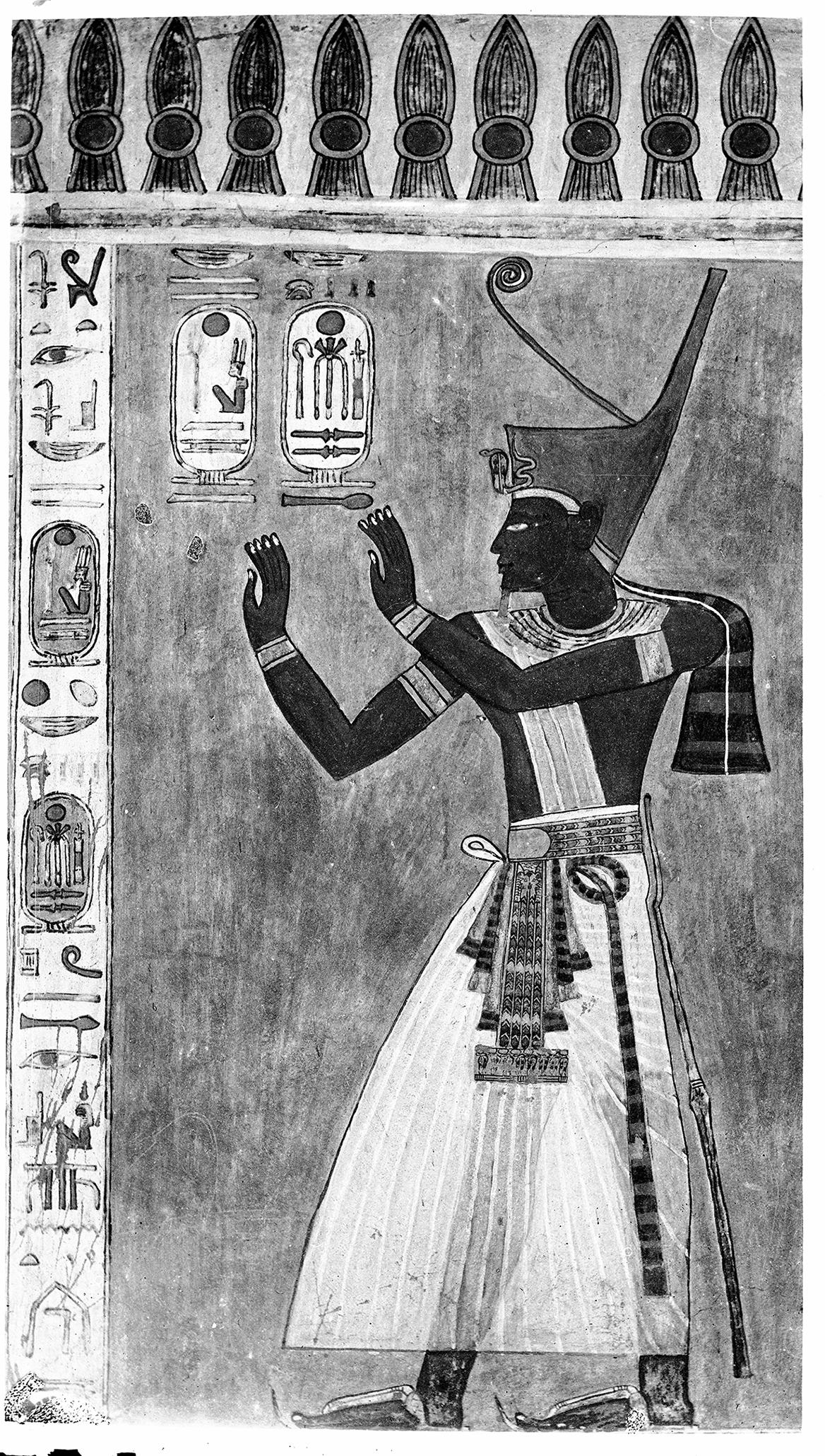 The tomb of Prince Khaemwaset (QV 44) photographed during Ernesto Schiaparelli's excavations that depicts Rameses III in adoration. Italian Archaeological Expedition excavations. Courtesy of the Egyptian Museum in Turin.