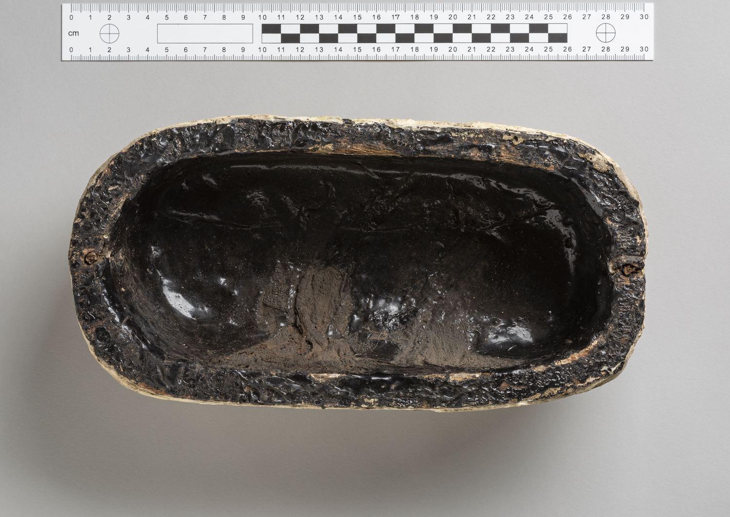 Interior view of a wooden container for a victual (food) mummy from the tomb of Imhotep (QV 46). Courtesy of the Egyptian Museum in Turin (S.5090).