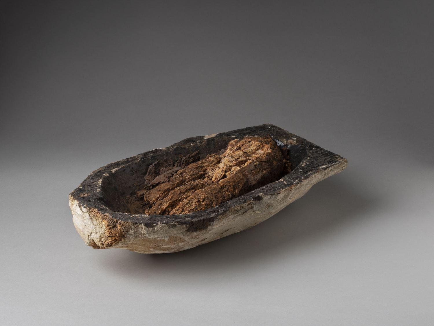 Interior view of a wooden container for a victual (food) mummy of duck meat from the tomb of Imhotep (QV 46). Courtesy of the Egyptian Museum in Turin (S.5092).