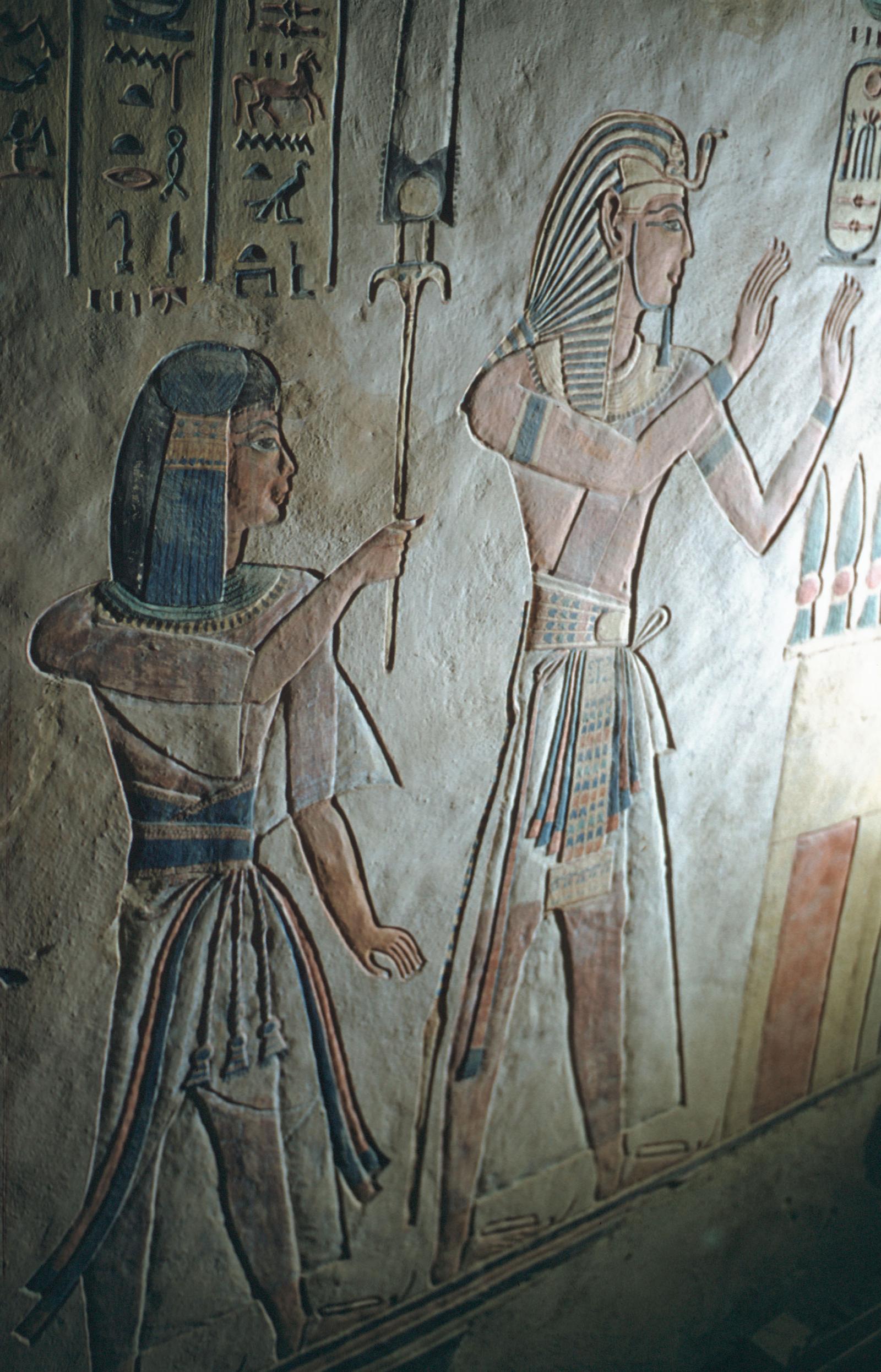 Detail of the king and the prince before a gate, Book of the Dead, Burial chamber C, left wall (center part). Courtesy of Uni Dia Verlag; Uni Dia Image Nr. 36636.