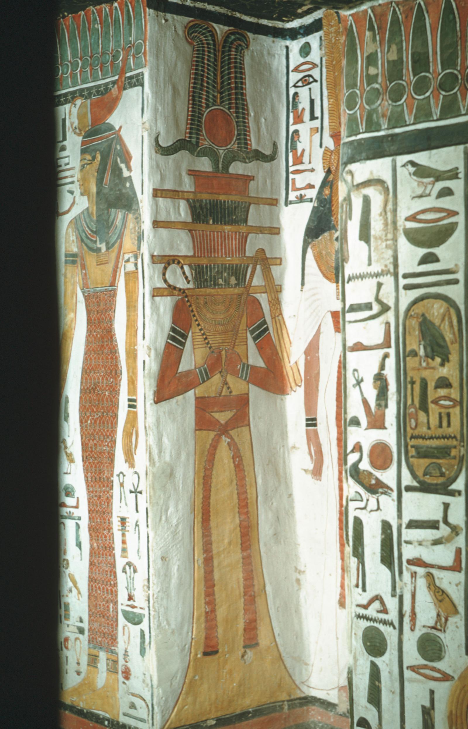 Anthropomorphic djed-pillar on the west wall of the large recess (reveal) of the east side of Chamber B. Courtesy of Uni Dia Verlag. Uni Dia Image Nr. 36816.