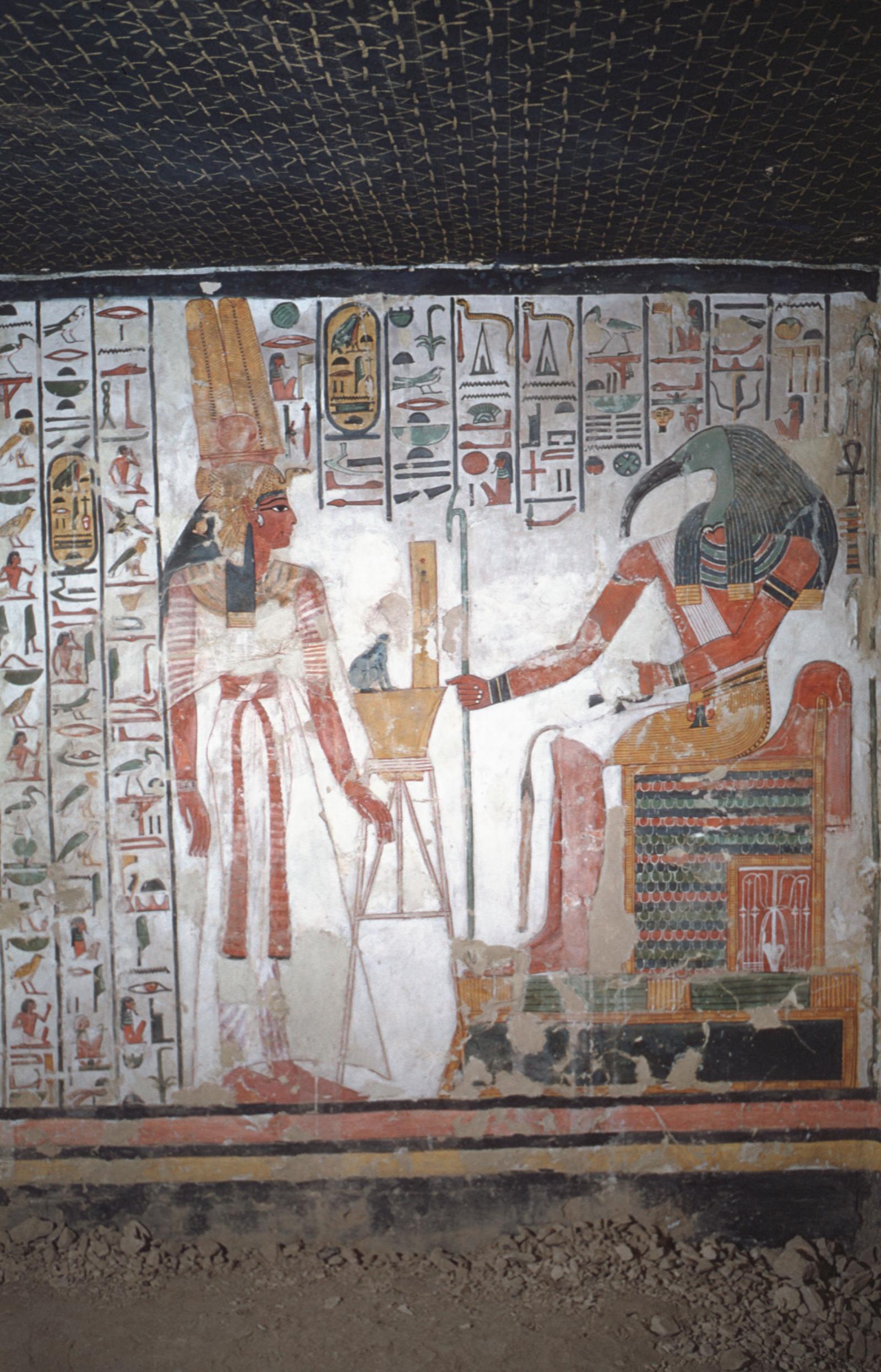 The queen before the god Thoth, left (north) wall of Side chamber Ba. Courtesy of Uni Dia Verlag. Uni Dia Image Nr. 36829.