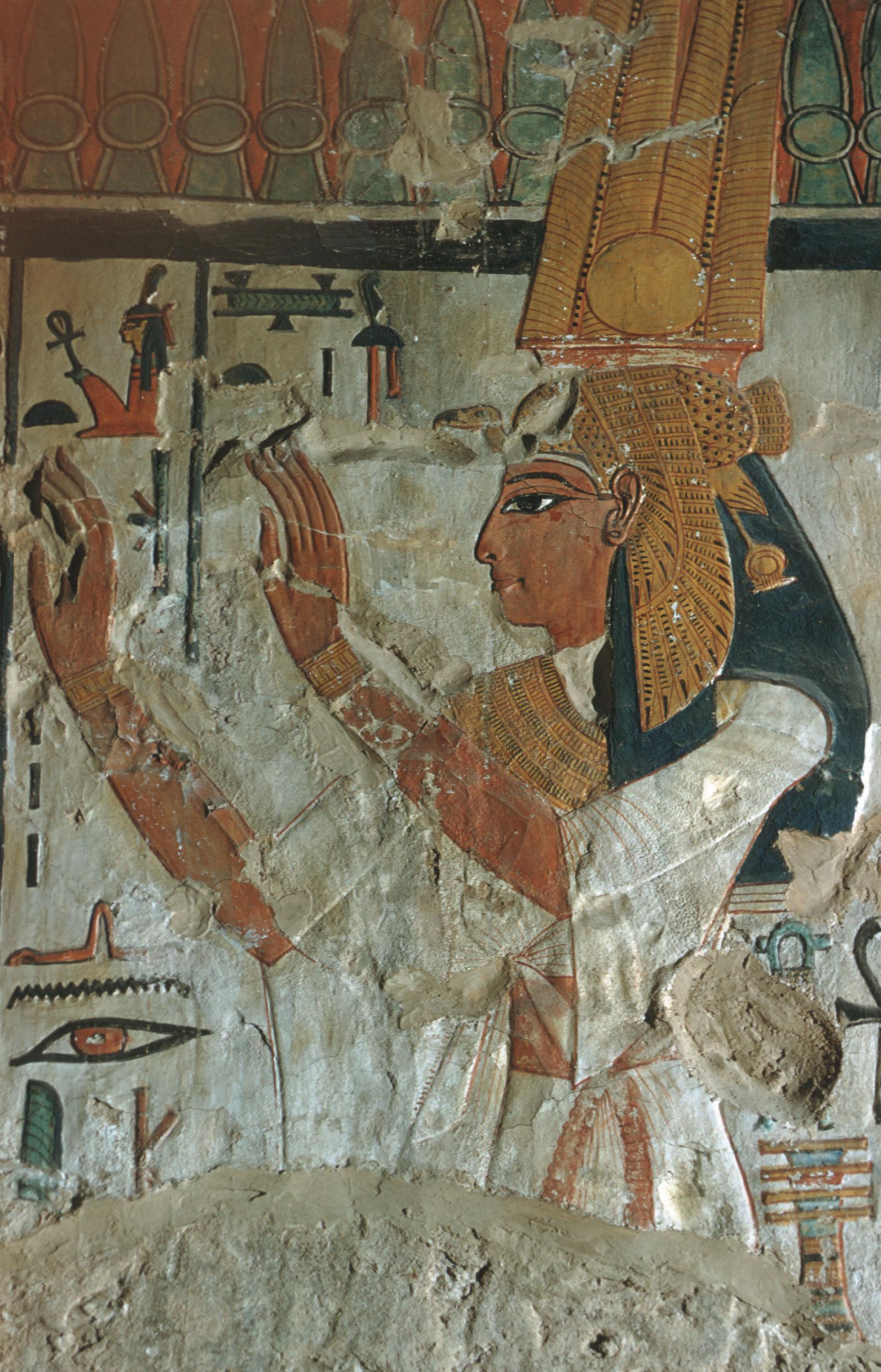 The queen worshipping two seated deities, Side Chamber Dc, front (south) wall (left part). Courtesy of Uni Dia Verlag. Uni Dia Image Nr. 36877.