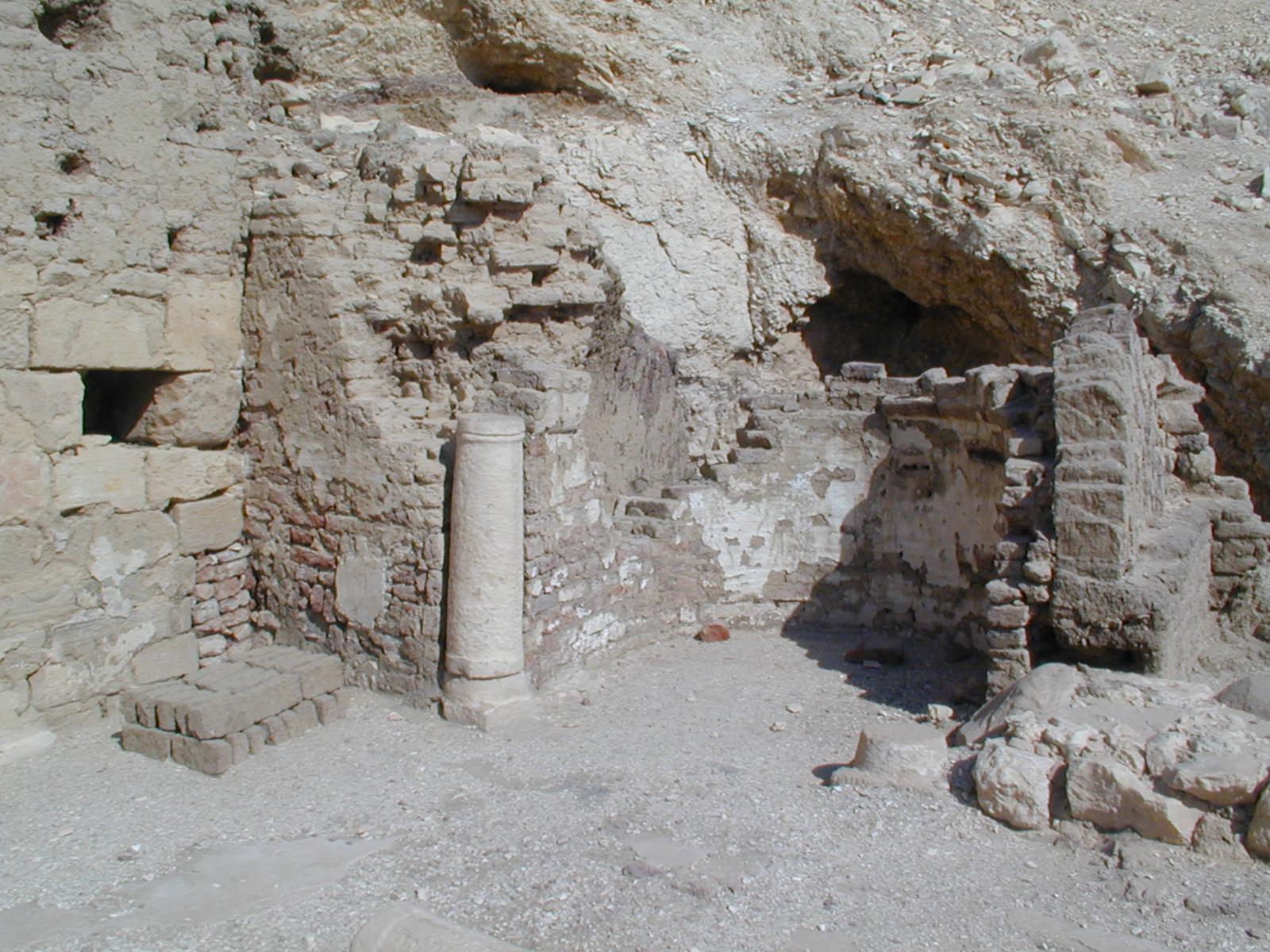The mud-brick and stone remains of the Coptic monastery at Dayr al-Rumi.