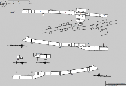 The four pillars in pillared chamber F are severely damaged: pillar 4 is almost completely missing. Pillars 2 and 3 were detached from the ceiling and were held up only by the debris that surrounded them. Only pillar 1 is still relatively intact, although much of the surface of its lower half has broken away. Corridors G and H exhibit the most extensive damage, including large fissures, surface spalling and, particularly in corridor H, extensive ceiling collapse.