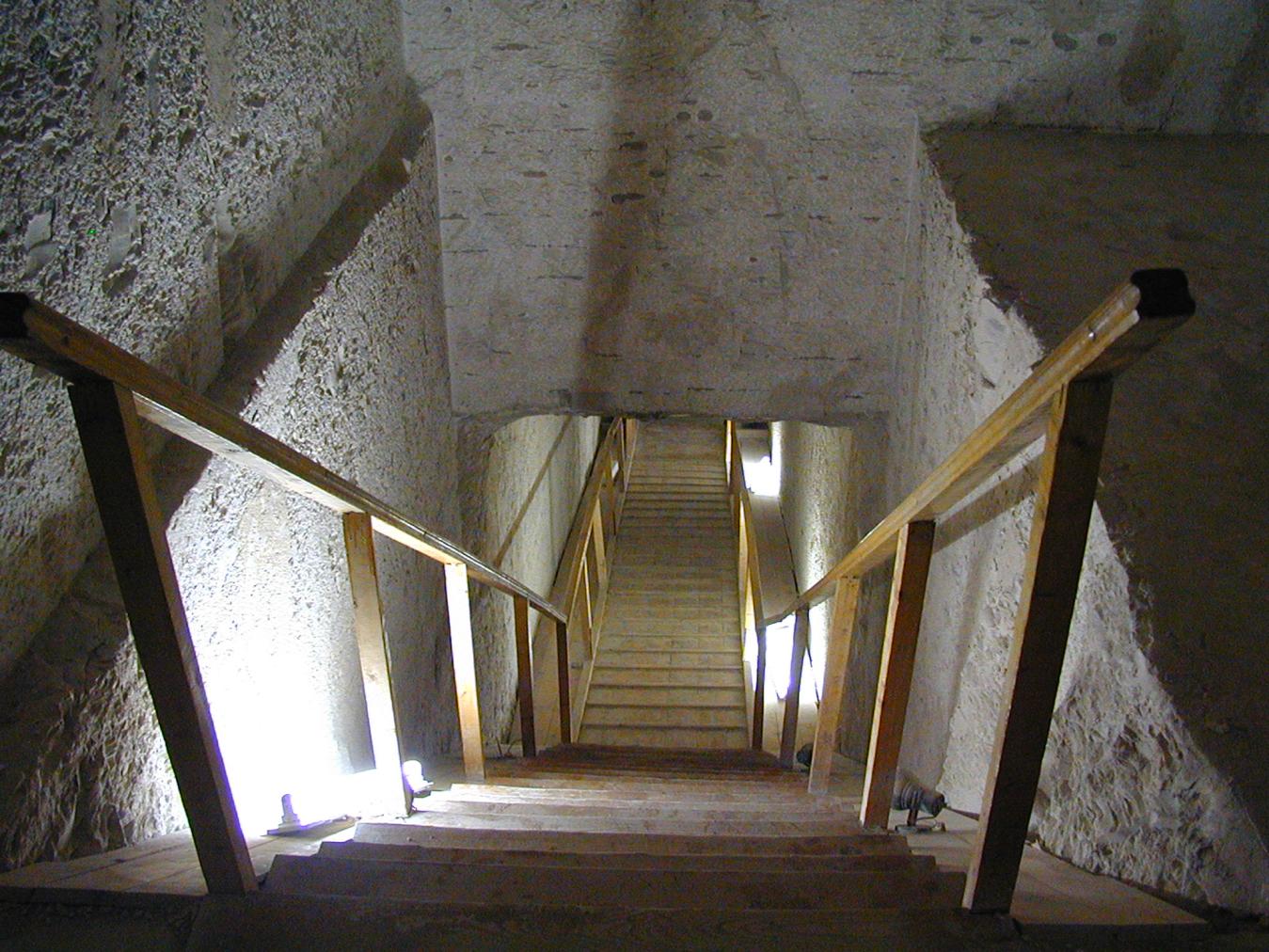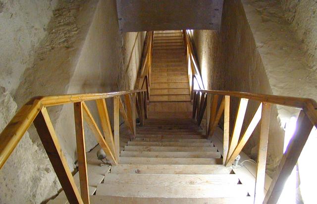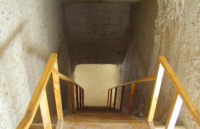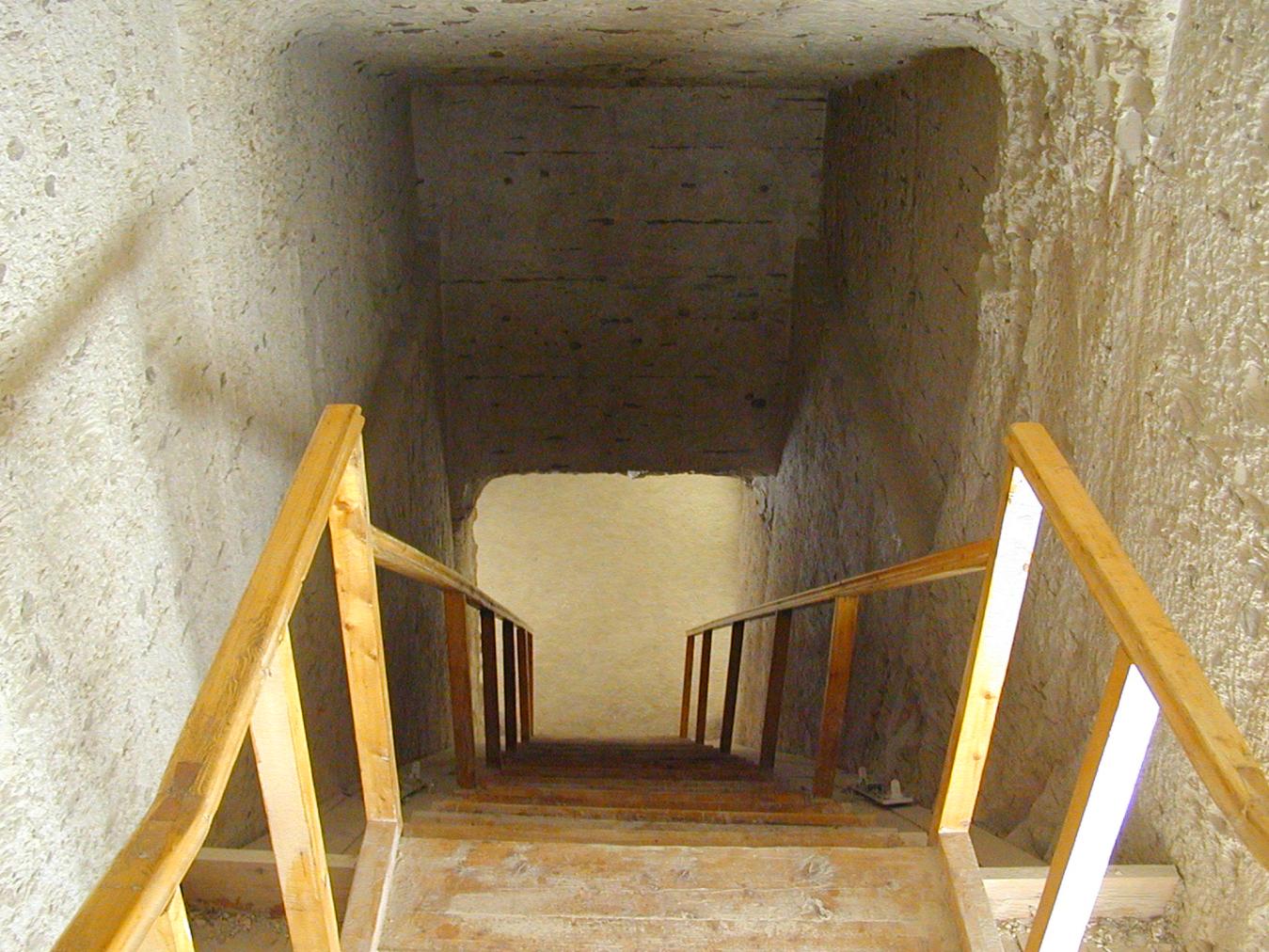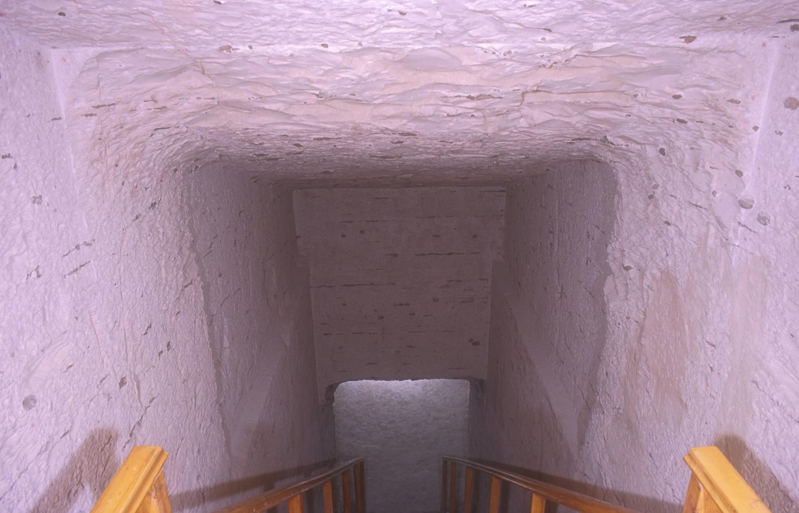 See entire tombThe stairwell leads from corridor B to gate D. On either side, narrow recesses have been cut into the tops of the walls. The original steps are badly damaged.