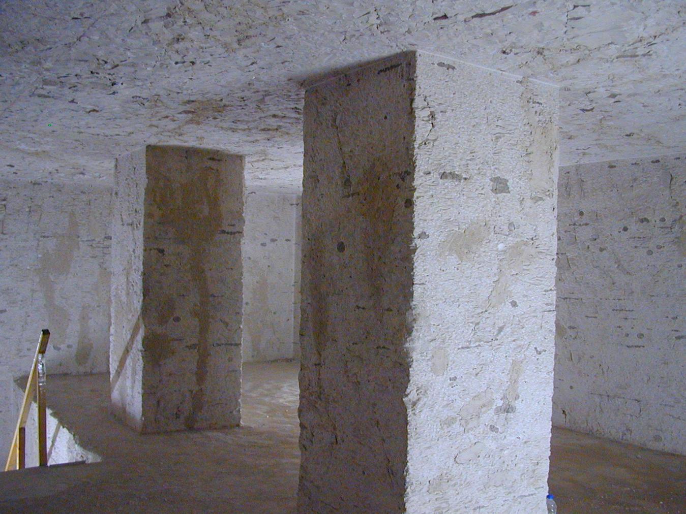 See entire tombTwo pillars stand in the center of this undecorated pillared chamber. The chamber marks a ninety degree angle shift to the east in the axis of the tomb. There is a stepped descent in its left (east) wall.