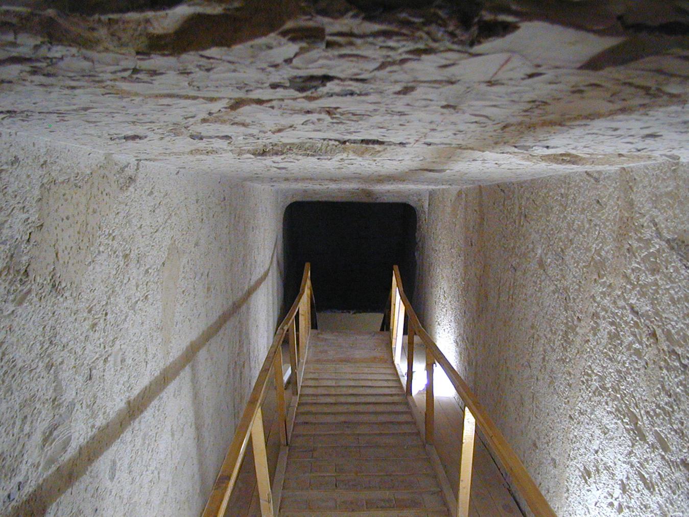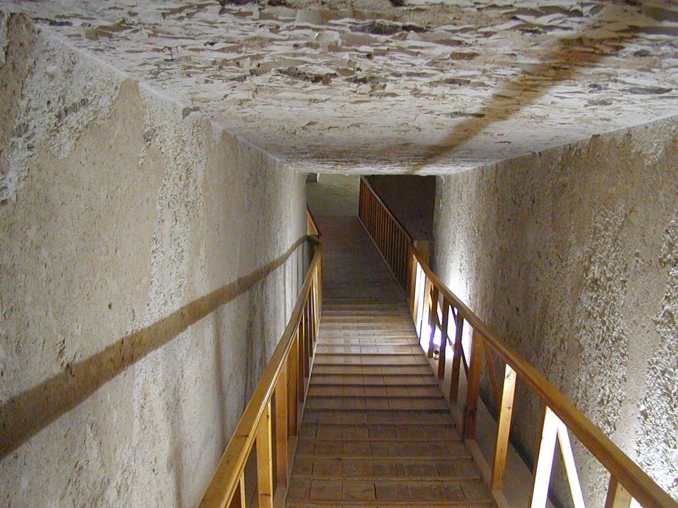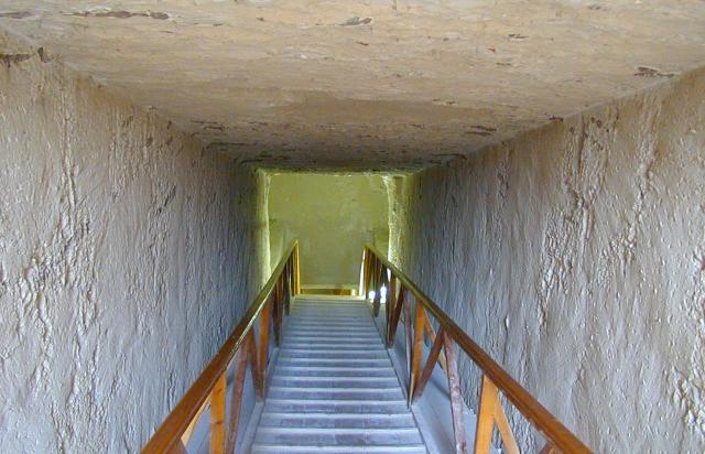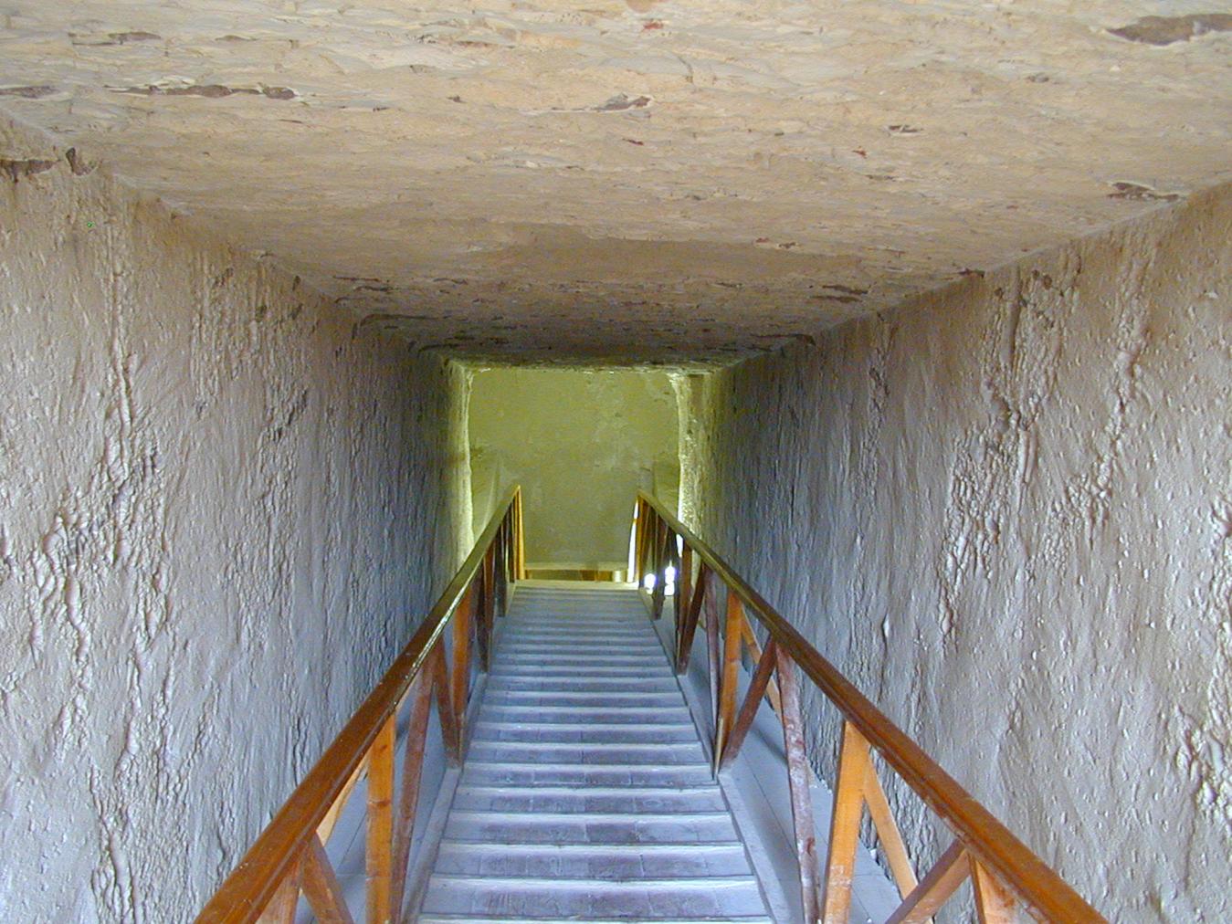 See entire tombThis long narrow corridor slopes down from gate G to stairwell H.