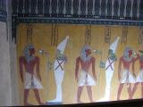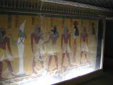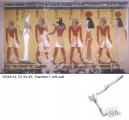 See entire tombChamber I is an antechamber leading into the burial chamber. It is the last chamber on the west-east axis. The decoration appears to have been hastily completed. The walls were plastered and painted, and show the king before Osiris, Anubis and Hathor. There are two hieratic graffiti from the reign of Horemheb recording a tour of inspection and restoration.
