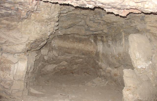 See entire tombLarge rectangular roughly cut chamber perpendicular to the shaft (A), with a niche or small side chamber jutting out of the middle of the south wall at a 45 degree angle. In the southeast corner of the chamber, the ceiling has collapsed, and the corner of the southeast chamber is therefore only estimated. Dried, cracked mud on the shaft wall and chamber floor indicated flooding. A mummified dog, fine pottery fragments, and bone and wood fragments were found in the chamber. The side chamber or niche also has a collapsed ceiling, making it difficult to assess its function.