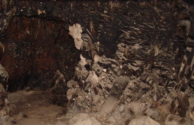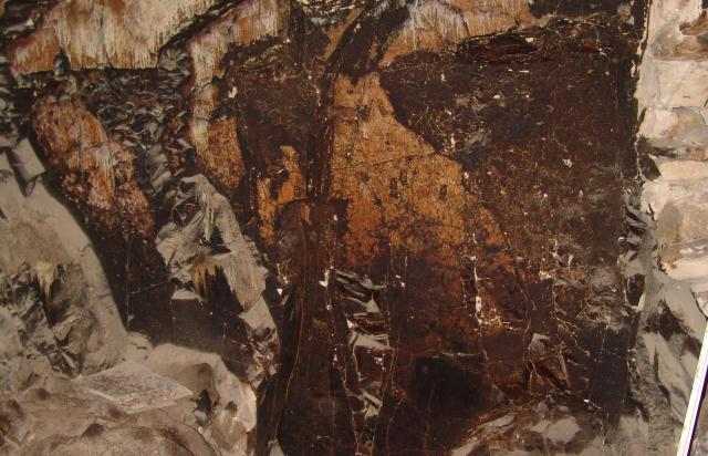 According to the GCI-SCA, although there is apparent rock loss in the tomb, it is otherwise considered structurally stable. Localized areas of rock loss include basal erosion of the walls in corridors (B) and (C), and at Gate C. The constructed masonry wall in front of the niche in chamber D is partially collapsed, with edges of the wall requiring stabilization to prevent further loss. The tomb is largely darkened from fire, such that rock surfaces and plaster surfaces alike are covered with a heavy dark brown deposit. The plaster is also possibly heat-damaged. Only the lower walls at the entrance in chamber B, where debris may have provided protection and where the heat source rose upwards toward the entrance, escaped fire-related darkening. There is evidence of post-fire loss, but only in relatively small localized areas on walls and ceiling. There is no evidence of stabilization treatments. The basal erosion of walls in corridors (B) and (C) and of the doorway between these chambers indicates the likelihood of past damage from flooding as well. Christian Leblanc indicated that a large amount of upslope runoff entered into this tomb during the November 1994 flood. Heat damage may also have weakened plasters and contributed to loss of substantial infill material in places and the partial collapse of the constructed masonry wall of the niche in chamber D. The long history of access to this tomb has also allowed for substantial bat activity and insect nests, which have also added to the tomb's overall deterioration.