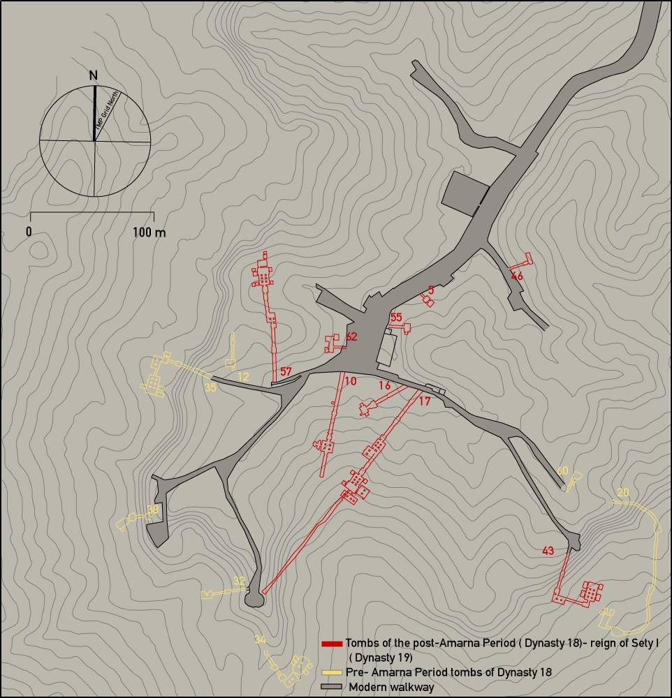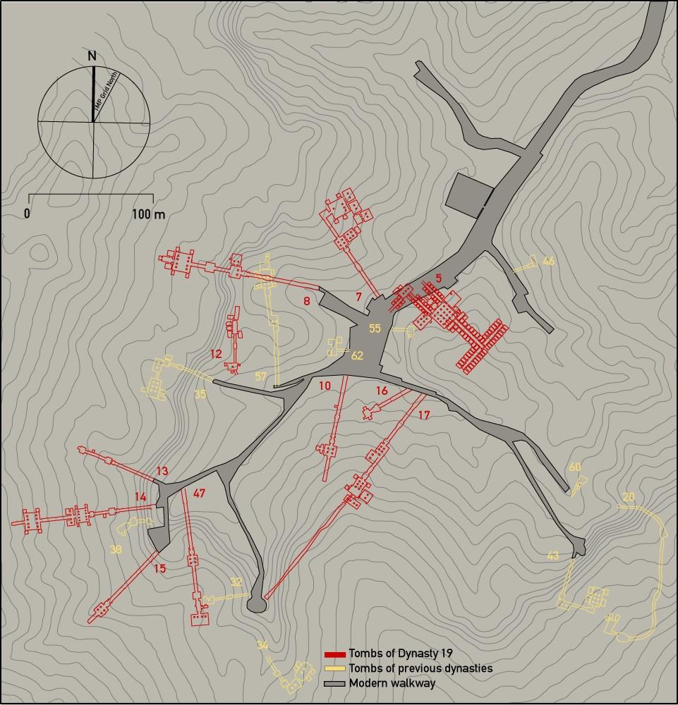 Old rest house, KV 18, KV 17, KV 16, KV 55, KV 62, KV 9, KV 10 and KV 11.