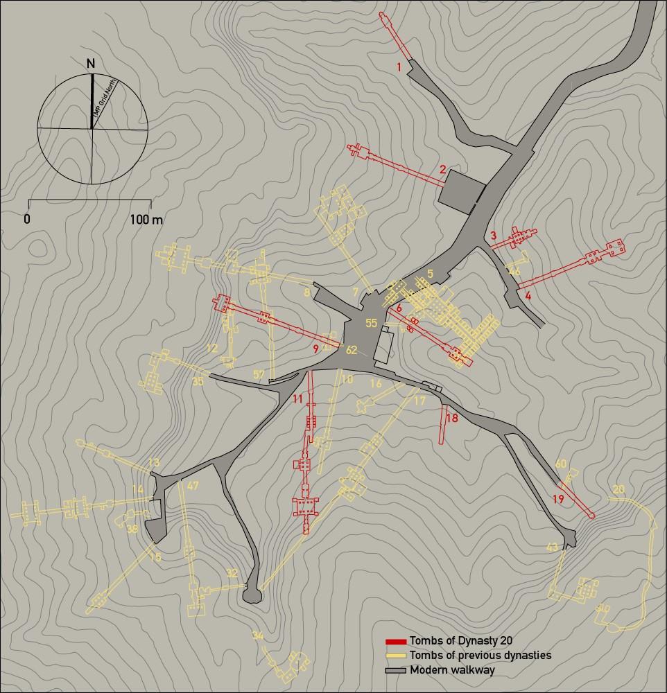 There are 64* numbered royal and private tombs in KV, ranging from small, pit tombs (KV 54) to huge labyrinths with over 120 corridors and chambers (KV 5). A few tombs have been “discovered” only in the past hundred years or so (KV 62: Tutankhamen; KV 46: Yuya and Thuya; KV 36: Maiherperi; KV 5: Sons of Rameses II ), but most had been opened - and plundered - long ago, some in antiquity, shortly after they were first sealed, others in Graeco-Roman and Byzantine (Coptic) times. There also may still be more. Dr. Zahi Hawass and an Egyptian-led expedition recently made a discovery tentatively numbered KV 65 in the West Valley, and their work is ongoing.