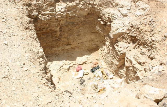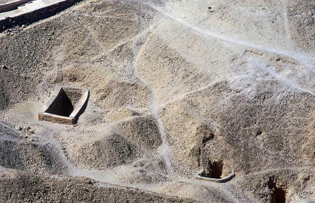 Valley of the Kings, cliff above KV 07, looking south; entrances to KV 62, KV 10, KV 09, KV 11, KV 08.