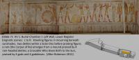 See entire tombThe lintel shows a winged disk, while the reveals and thicknesses give the king's names and titles. Door pivot holes show that this gate was intended to be closed with large wooden double doors. A step in the gate creates a descent from burial chamber J to chamber K.
