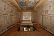 See entire tombThe burial chamber has a barrel-vaulted ceiling. It was originally intended to be a second corridor. Evidence of this change can be seen in the uneven finish of the floor near the walls compared to the smoothness of the central area.