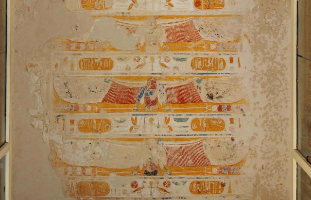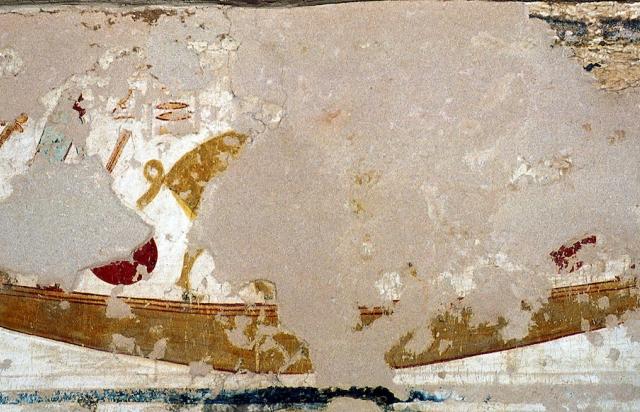 The conversion of the second corridor to a burial chamber is noteworthy. Its central two-tiered pit in the floor, provided with canopic jar niches in the sides, is unique. The figure of the king with the goddesses adoring the sun disk on the outer lintel of gate B is a first. This is one of the latest tombs to be cut in a side Wadi. It was used as a dwelling by Coptic monks.