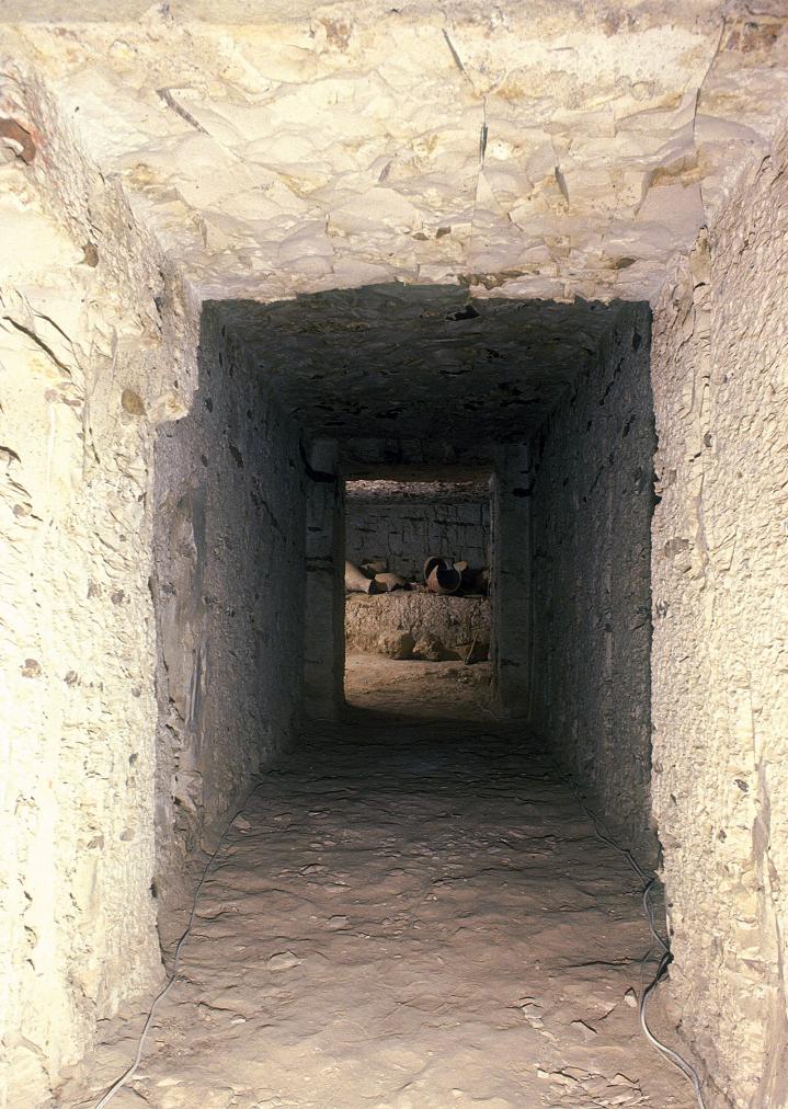 See entire tombThe threshold has the same slope as corridor B. The soffit is level. The corners of the jambs are slightly rounded at the ceiling.
