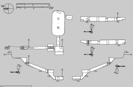 KV 42 is located in the south branch of the southwest Wadi. A steep stepped entryway (A), a steep corridor (B), and a stairwell (C) lead down to a chamber (F) where the axis turns ninety degrees to the left (east). Another corridor (G) leads to the cartouche-shaped, pillared burial chamber J, which is flanked by a side chamber (Ja). Except for an unfinished star pattern and a kheker-frieze in burial chamber J, the tomb is undecorated.