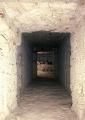 See entire tombThe corridor slopes steeply down to stairwell C. The left (east) section of the ceiling is rough, since the workmen encountered harder stone there. The rest of the ceiling is well cut. Red masons' marks can be seen along the right (west) wall.