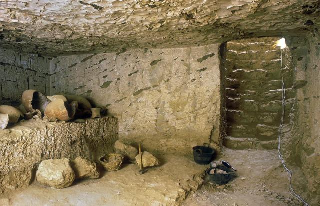 See entire tombThe small chamber, located to the right (south) of burial chamber J, is trapezoidal in plan.