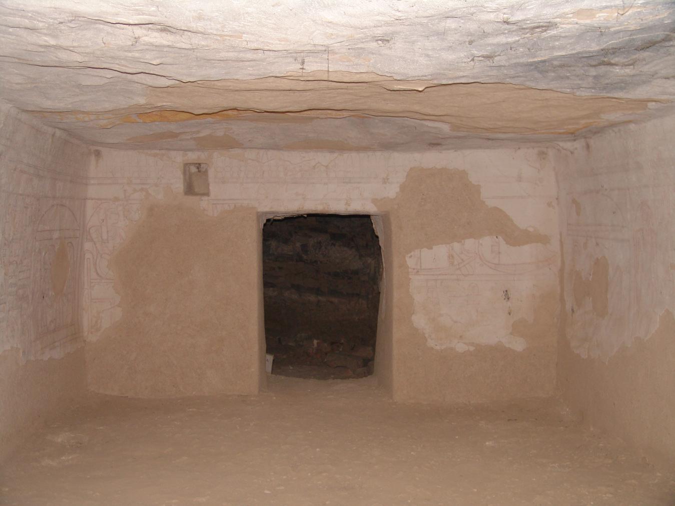 See entire tombThis chamber was never completed and the walls are roughly cut and undecorated. The floor level is slightly lower than the burial chamber, evidenced by the step at its gate.
