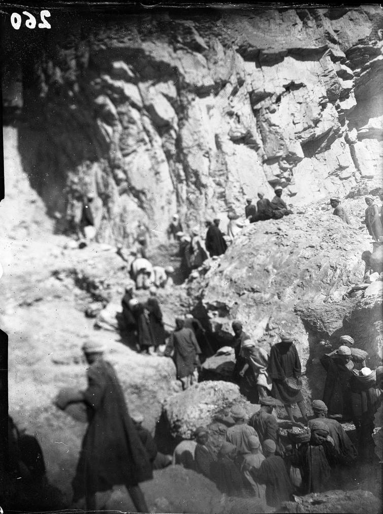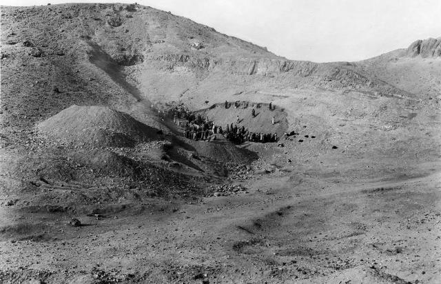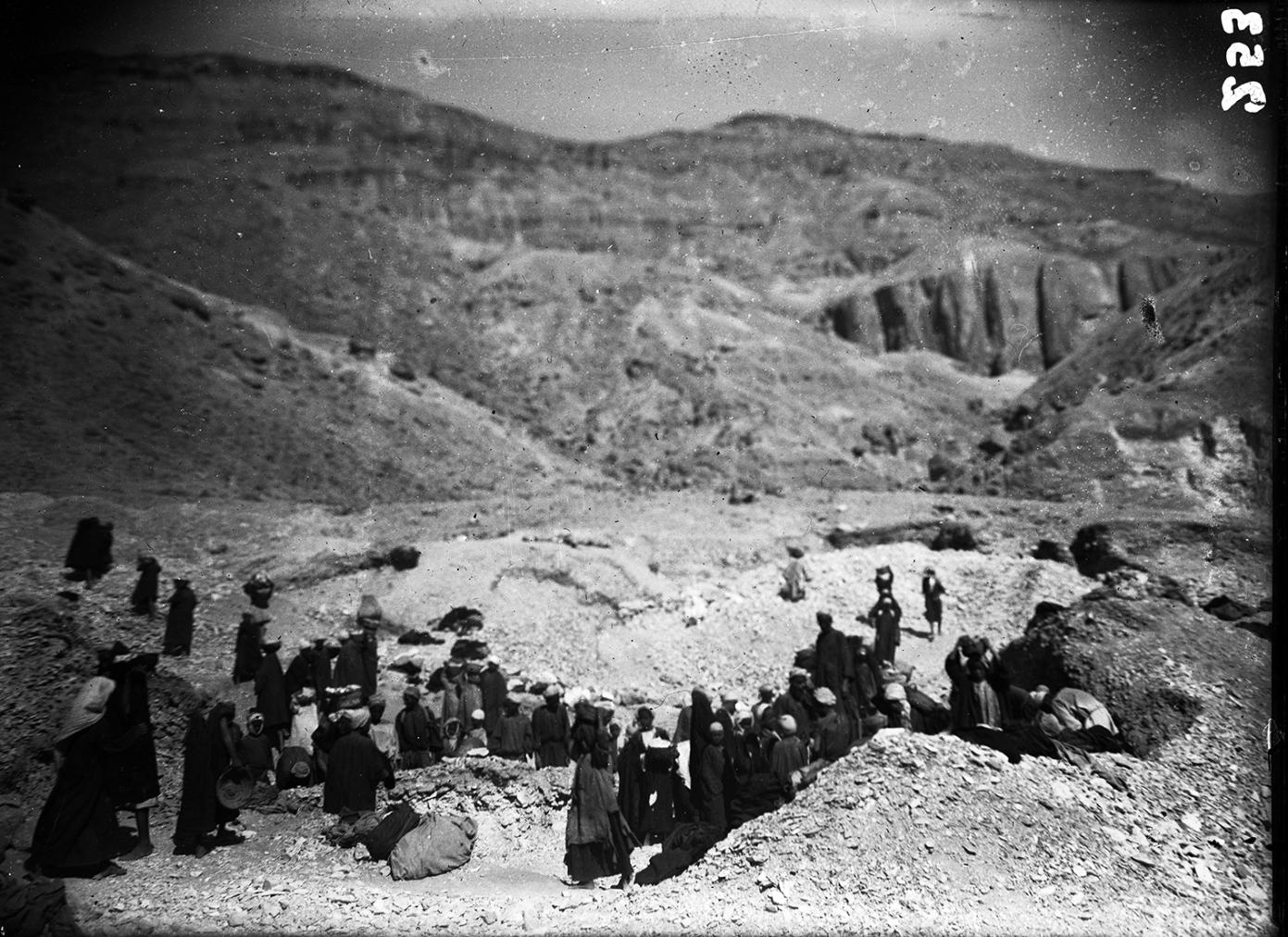 The earliest references we have to modern European visitors in QV and surrounding wadis are from the 19th Century. Jean Jacques Rifaud and Giovanni Battista Belzoni both recorded QV 52 in the early 1800s. Robert Hay of Linplum (1826), John Garder Wilkinson (1828), Jean-François Champollion and Ippolito Rosellini (1829), Karl Richard Lepsius (1844), and Heinrich Brugsch (1854) explored accessible tombs, conducted epigraphic surveys, and documented architectural tomb plans. The first systematic excavation, however, was conducted by an Italian expedition from the Turin Museum, led by Ernesto Schiaparelli and Franceso Ballerini (1903-1905). Their excavations in the QV and subsidiary wadis led to the discovery of the tombs of Nefertari (QV 66) and of the sons of Ramesses III (QV 43, QV 44 and QV 55), the clearing of several 18th Dynasty shaft tombs, and photographic documentation of the landscape, tombs, and finds. Schiaparelli and Ballerini also applied a new tomb numbering system, one that is still in use today. The Italian mission’s work in the area led to the establishment of the largest collection of QV objects at the Turin Museum.