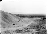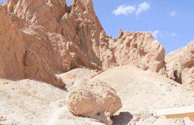 About two kilometers west of the QV, several large wadi systems cut deep into steep cliffs that define the back of the Qurn. These are collectively known as the Western Wadis. The area’s magnificent scenery has been remarked upon by nearly every archaeologist who has made the trek. Elizabeth Thomas wrote that “beauty alone … would make its exploration a pleasure.” Howard Carter observed that there was “no doubt” these wadis were cemeteries for 18th Dynasty royal wives and daughters, and that beauty and isolation were features that probably led ancient Egyptians to choose them, together with the more easily accessible Valley of the Queens.