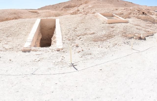 Lastly, a large complex of subterranean shaft tombs, WB 1, lie further west in Wadi al-Bariyah. First noted by Howard Carter, WB 1 was excavated by a joint mission between the Egyptian Ministry of Tourism and Antiquities (MOTA) and the NKRF. In contrast to the hidden cliff tombs of Wadis A-D, these shaft tombs were excavated into a mound some 15m above the broad, flat flood-plain. The burial equipment discovered in and associated with these tombs indicate that they belonged to members of the royal court of Amenhetep III. Most recently, the joint MOTA-NKRF mission discovered a new royal tomb in Wadi C. This tomb, Wadi C-4, has been identified as belonging to Thutmes II. Most recently, the joint mission between the New Kingdom Research Foundation and the Ministry of Tourism and Antiquities discovered a new royal tomb in Wadi C. This tomb most likely belonged to a great royal wife and several children of a Thutmoside king. The Western Wadis thus served as a precursor to the Valley of the Queens as the burial place of senior members of the royal family, namely Queens. The reason for the shift from the outlying wadis to the QV in the 19th Dynasty is unknown, but may be due to the easier accessibility of the latter.