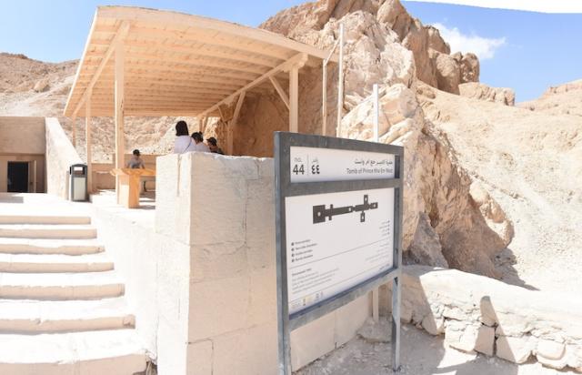 Other Steps have been taken to mitigate the negative affects of tourist visitation. Paths bordered by rubble retaining walls control the flow of tourists, and shelters have been erected at QV 51, QV 55, QV 44, and QV 66. New signage was installed at the open tombs by the Supreme Council of Antiquities and the Ministry of Tourism and Antiquities. An air circulation system was installed in QV 66, which now requires a separate ticket to visit and tourists are limited to 15 minutes inside. The open tombs, QV 44, QV 52, and QV 55, have plexiglass panels to protect the reliefs from the hands of visitors and wooden flooring to protect the floors.